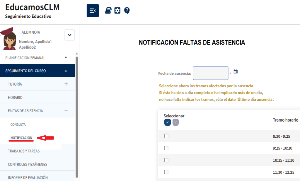 Selecciona la fecha y el tramo horario específico (o toda la mañana si es necesario).Si la ausencia cubre varios días, selecciona la fecha de inicio y la fecha de finalización.Elige el motivo de la ausencia entre las opciones: ‘enfermedad, visita al médico, problema familiar u otros’.Completa la casilla de comentarios si deseas añadir más detalles para justificar la falta.