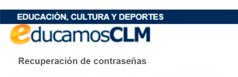 La pantalla principal de EducamosCLM te permite obtener de forma autónoma nuevas credenciales específicas en caso de pérdida u olvido. Recuperación de